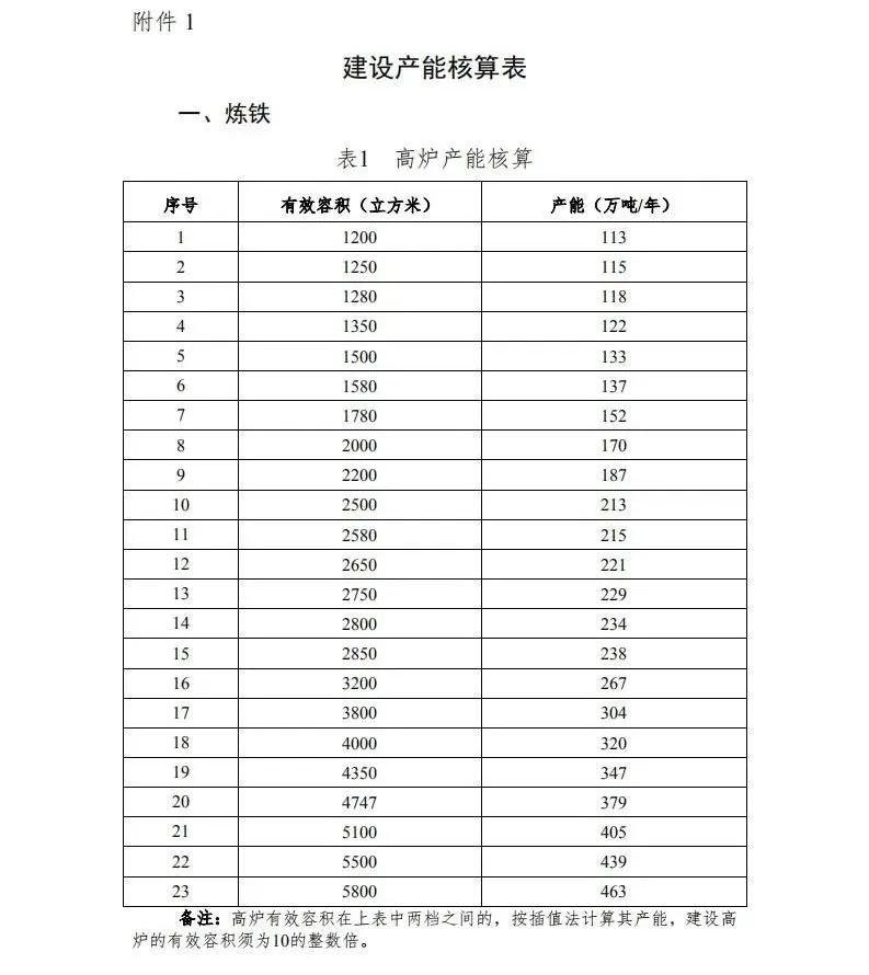 最新的《2020年鋼鐵行業產能置換實施辦法》(征求意見稿)發布,新的產能置換實施方案即將出臺,值得注意的是,從征求意見稿建設產能核算表附件來看,1200m3以下的高爐、100t以下轉爐、50t以下電爐都刪除了,就是說新的產能置換政策或將不允許新建1200m3以下的高爐、100t以下轉爐以及50t以下電爐,而且現有的這些設備肯定也將逐步退出!