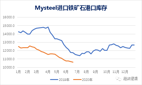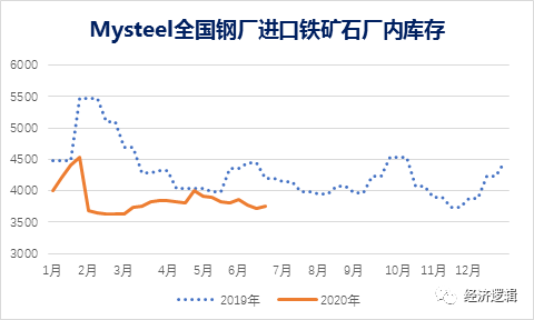 從全球角度來看,生鐵產量的下降無疑導致了全球鐵礦石需求的下降,鐵礦石供應方雖然困擾不斷,但是還是保持小幅增長的勢頭。Mysteel全球發運數據也顯示2020年二季度的鐵礦石供應穩步改善,巴西,澳大利亞和南非等礦石產地的發運并未受到疫情的重大影響,足以緩解市場對鐵礦石供應鏈被干擾的擔憂。但市場依舊疑慮重重,聚焦于中國主要港口鐵礦石庫存不斷下降創下多年新低,忽視了鐵礦石供應鏈全鏈條的庫存增量。