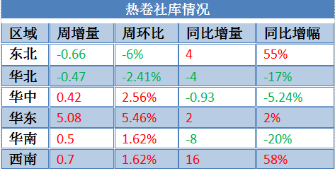 本周熱卷社會庫存累庫區(qū)域增多,華東庫存周環(huán)比上升5.46%,且較去年同期高出2%,從全國范圍來看,熱卷本周累庫明顯,表觀需求回落近10萬噸。熱卷支撐較建材減弱。