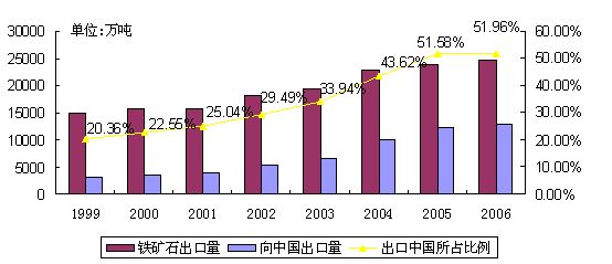 澳大利亞鐵礦石出口中國占比從40%+逐年增長至60%+的水平