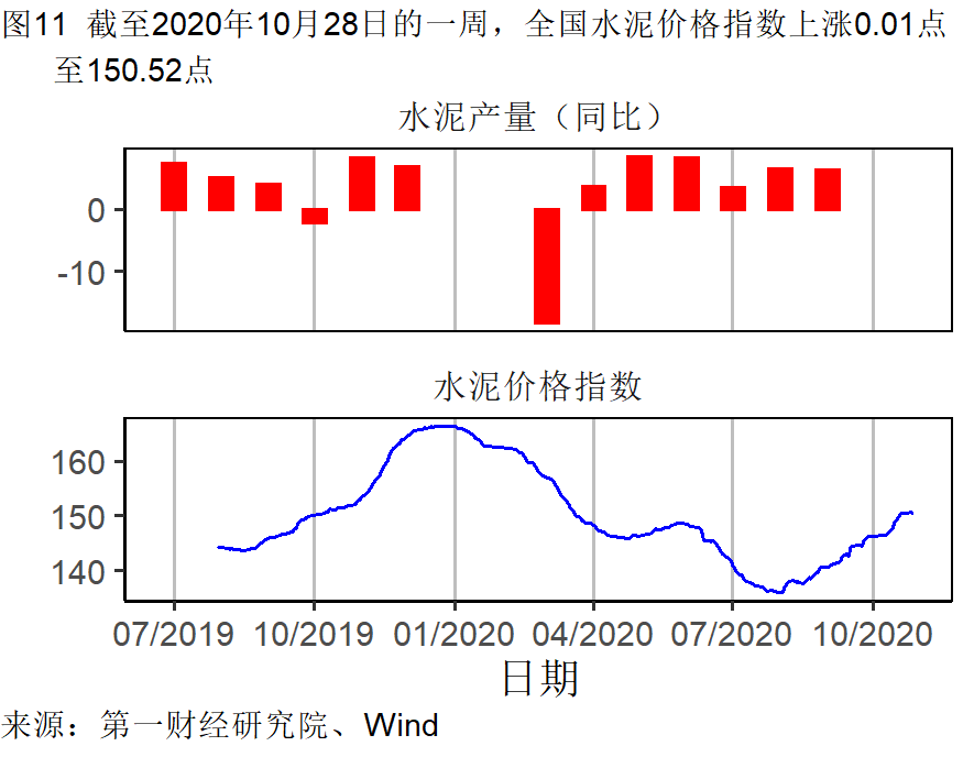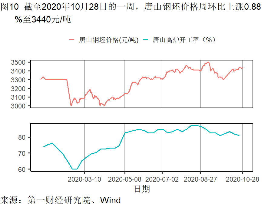 周度形勢總體判斷 唐山鋼坯價(jià)格在截至10月28日的一周上漲了0.88%, 過去一個(gè)月上漲了3.61%,今年以來上漲了4.24%。水泥價(jià)格在截至10月28日的一周上漲了0.01%,過去一個(gè)月來上漲了2.84%,今年以來下跌9.57%。動(dòng)力煤價(jià)格在截至10月28日的一周維持在559元/噸,過去一個(gè)月上漲1.45%,今年以來上漲1.45%。 截至10月28日的一周,央行通過公開市場凈投放資金900億元。銀行間市場隔夜回購利率上漲48個(gè)基點(diǎn),過去一個(gè)月來上漲187個(gè)基點(diǎn),今年以來上漲68個(gè)基點(diǎn)。七天回購利率過去一周上升65個(gè)基點(diǎn),過去一個(gè)月來上升55個(gè)基點(diǎn),年內(nèi)持平。 國家統(tǒng)計(jì)局27日公布,1-9月中國工業(yè)企業(yè)利潤總額累計(jì)值達(dá)到42665.0億元人民幣,同比下降2.4%,降幅比1-8月收窄2.0個(gè)百分點(diǎn),營業(yè)收入累計(jì)值達(dá)到了742293.2億元,同比下降1.5%,收窄1.2個(gè)百分點(diǎn)。從2月以來跌幅逐漸收窄,工業(yè)企業(yè)利潤逐步回升。 具體來看,三季度,在41個(gè)工業(yè)大類行業(yè)中,有31個(gè)行業(yè)利潤同比增加,24個(gè)行業(yè)利潤增速超過兩位數(shù)。其中汽車制造業(yè)增長53.8%,有色金屬冶煉和壓延加工業(yè)增長52.0%,黑色金屬冶煉和壓延加工業(yè)增長39.1%,通用設(shè)備制造業(yè)增長32.4%,電力、熱力生產(chǎn)和供應(yīng)業(yè)增長22.4%,電氣機(jī)械和器材制造業(yè)增長16.8%,這六個(gè)行業(yè)成為拉動(dòng)三季度規(guī)模以上工業(yè)企業(yè)利潤同比增長的主要行業(yè)。 值得注意的是,盡管前三季度工業(yè)企業(yè)利潤持續(xù)穩(wěn)定恢復(fù),企業(yè)的經(jīng)營可能仍然面臨壓力。9月份當(dāng)月工業(yè)企業(yè)利潤同比增長10.1%,增速比8月份回落9個(gè)百分點(diǎn)。數(shù)據(jù)顯示,工業(yè)企業(yè)的1-9月的產(chǎn)成品庫存累計(jì)值達(dá)到了45300億元,同比上漲了8.2%,以及1-9月應(yīng)收賬款達(dá)到了162400億元,同比上漲了14.3個(gè)百分點(diǎn),仍然維持在一個(gè)較高水平,企業(yè)利潤持續(xù)向好基礎(chǔ)仍需鞏固。