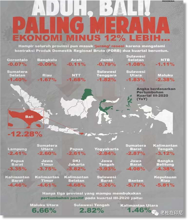 三季度印尼34個省經濟增長圖,大部分為負值(紅色),巴厘島最慘,僅北馬魯古省和中蘇拉威西省及北加里曼丹省為正值(綠色),而前二者均為鎳產業扎堆兒的地區,給力!