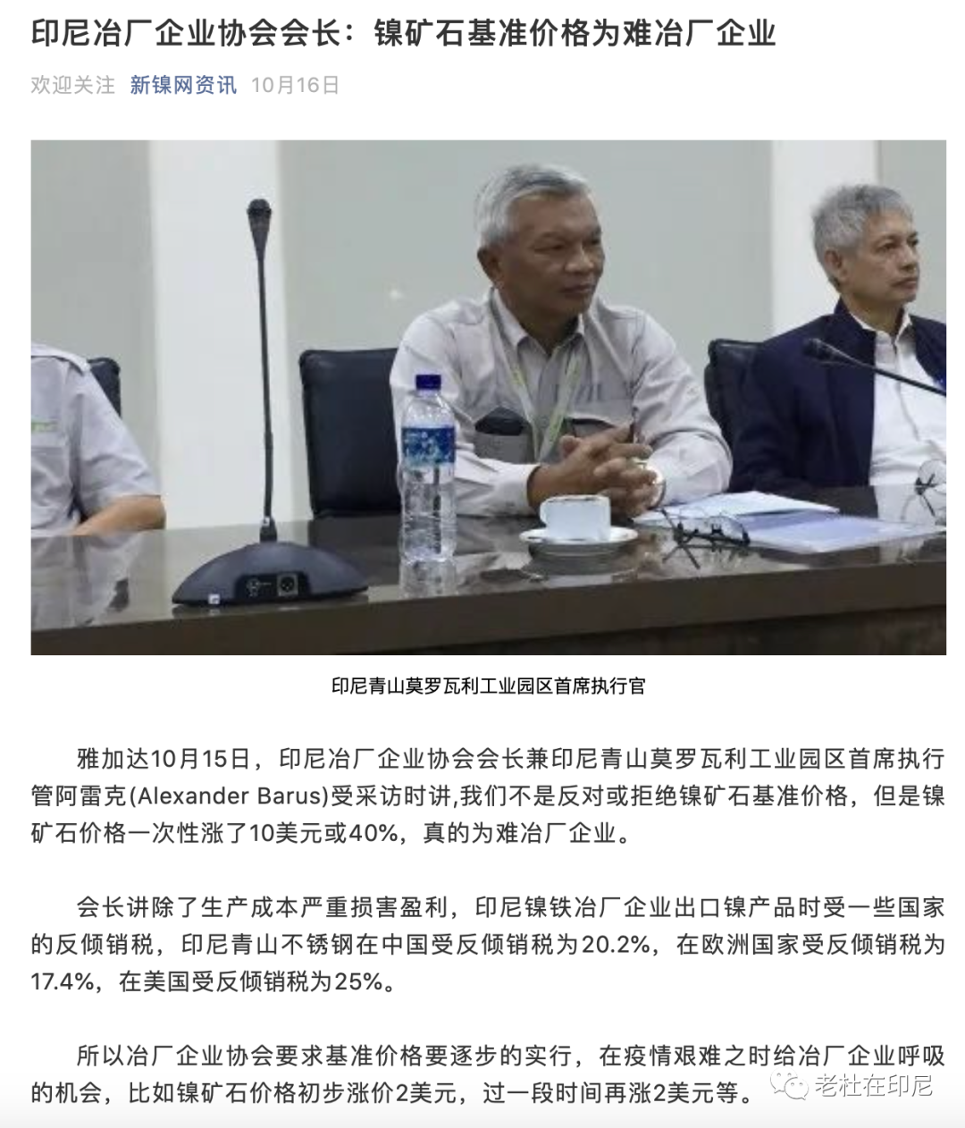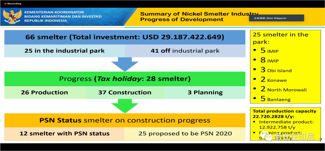 印尼投資協調委員會官員近期對印尼鎳產業的總體闡述