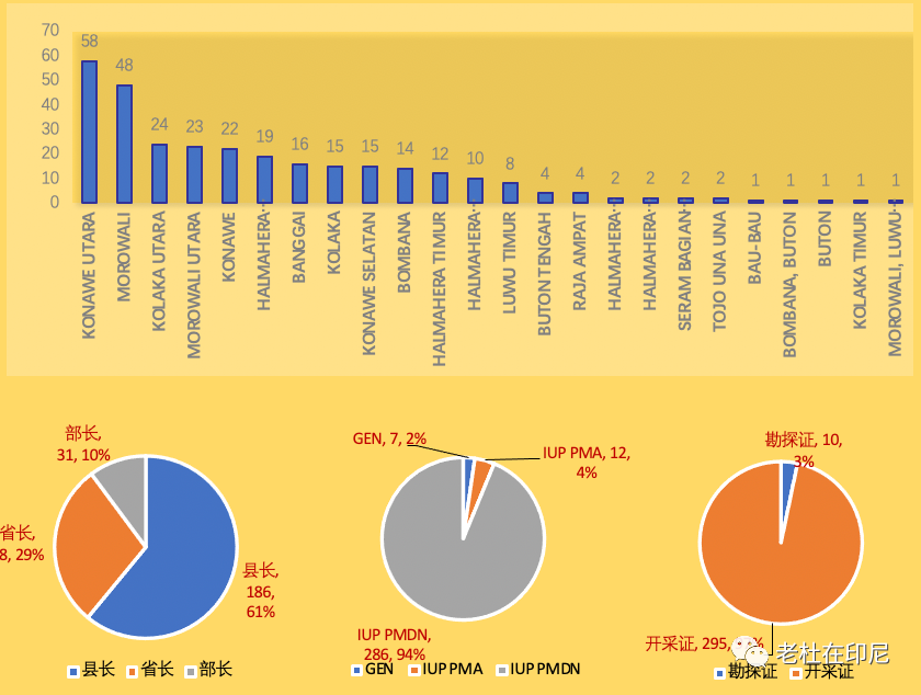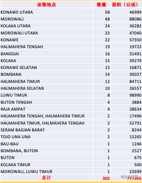 印尼現有305家鎳礦公司的構成分析,主要區域:北科納威,莫洛瓦力,北科拉卡,中哈馬黑拉。。。