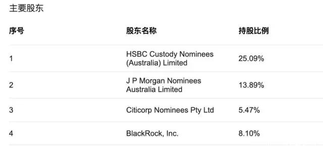 比如必和必拓的前4大股東中,除了匯豐銀行代持股之外,實際上最大的單一股東是摩根大通,接下來是花旗銀行以及黑石資本。