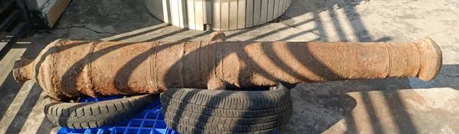據(jù)白蕉一廢品站工作人員介紹,該鐵炮是從雙湖路跨雞啼門特大橋附近收購回來。收購時,原炮身還粘有黑泥和貝殼,推測此鐵炮為建橋施工時,由工人從地下挖掘出來的。