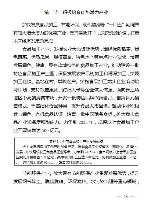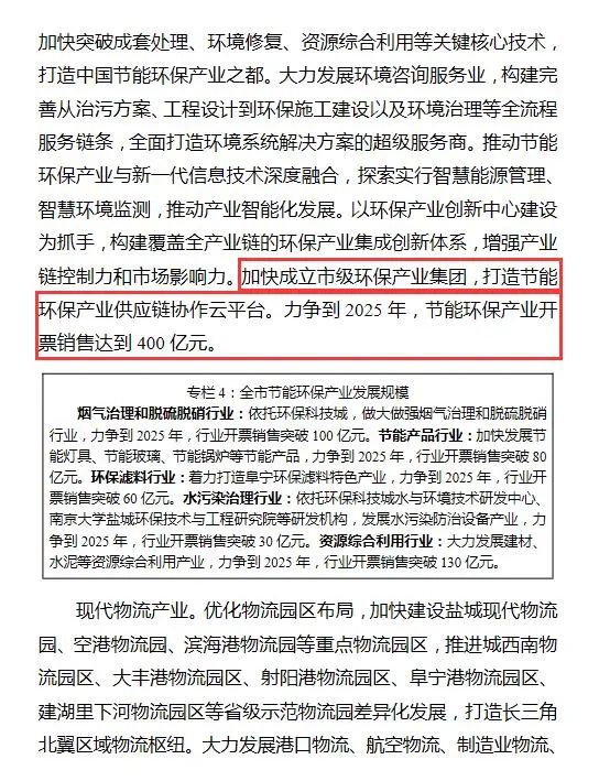 日前,鹽城發布《鹽城市國民經濟和社會發展第十四個五年規劃和二○三五年遠景目標綱要》。綱要第二篇第四章第二節提到,積極培育節能環保等“十四五”期間具有較大增長潛力的優勢產業。