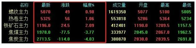 期鋼今日小幅上探,期螺上漲49收?qǐng)?bào)5070,期卷上漲56收?qǐng)?bào)5325,鐵礦石上漲24.5收?qǐng)?bào)1196,焦煤下跌77.5收?qǐng)?bào)1978,焦炭下跌114收?qǐng)?bào)2713.5。