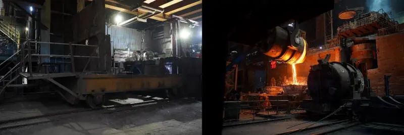 這個(gè)建筑是煉鋼廠西區(qū)鐵水倒罐站的操作間,操作間外,起重機(jī)正在吊運(yùn)鐵水罐。2007年,北方一家特鋼廠裝有30噸鋼水的鋼包墜落在地,上千度高溫的鋼水流入吊車行車線路下方的會(huì)議室,造成正在交接班的32人死亡。