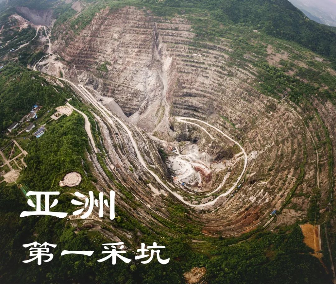 從空中俯瞰,采坑呈一個放倒的葫蘆狀,伏在群山之間,形成一個巨大的人工峽谷。