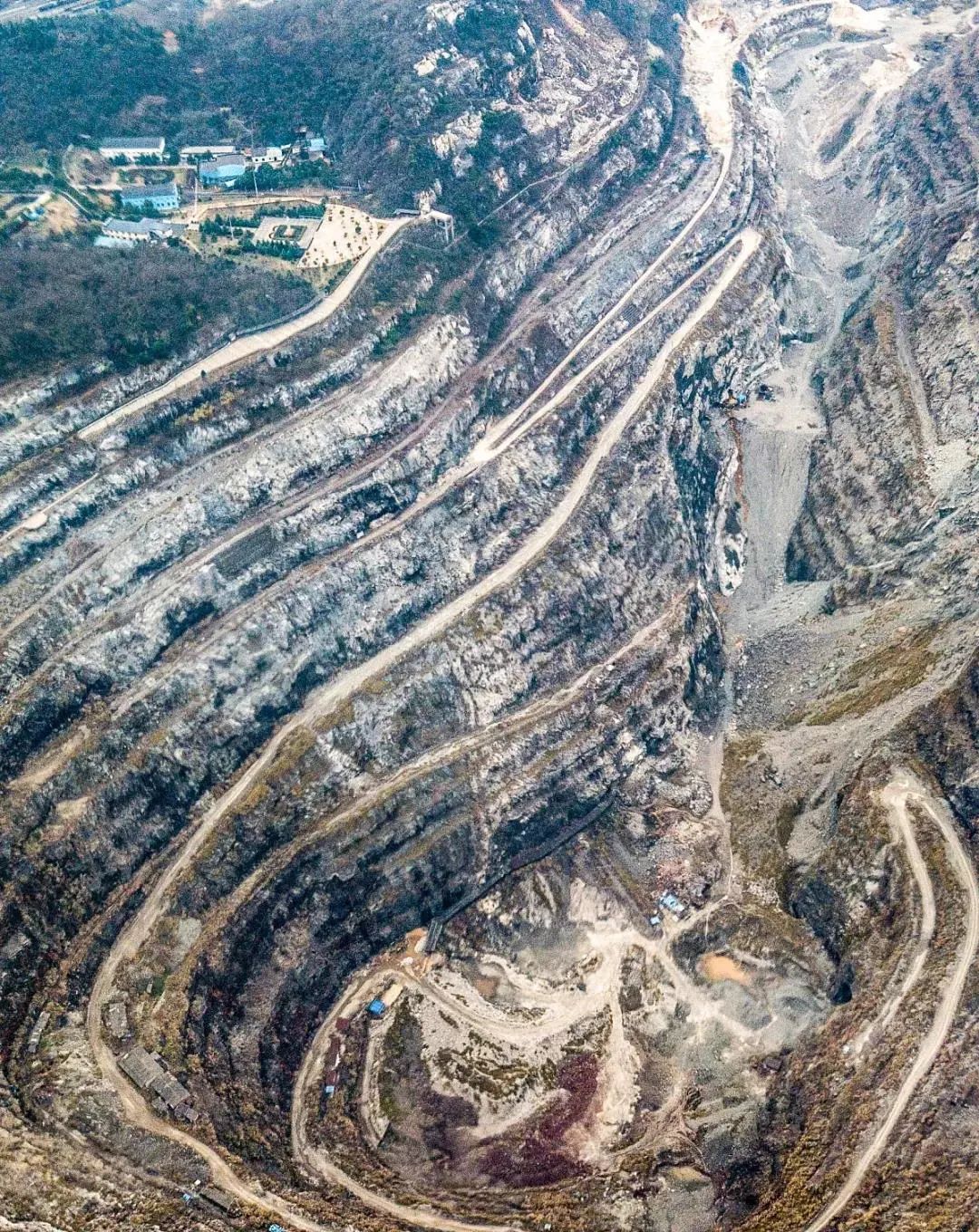 這些每條寬8米,垂直間距12米的公路,像年輪一樣記錄著采坑的歷史。