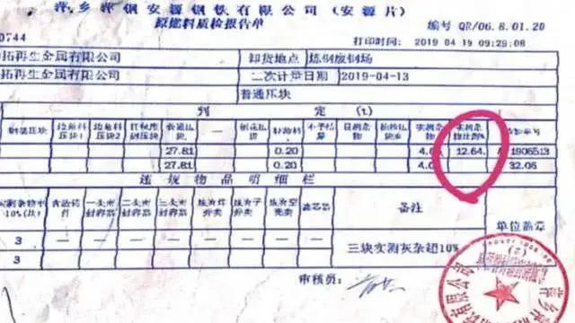 出于對生意伙伴的信任,雙方并沒有簽訂合同,謝師傅在4月10號,4月16號共買了兩批鋼,算上運輸成本,一共是131370元,然而,讓他沒想到的是,送到江西的煉鋼廠沒多久,就收到了廠方出具的雜質含量過高的檢測報告,兩批鋼雜質含量分別為12.64%和14.55%。