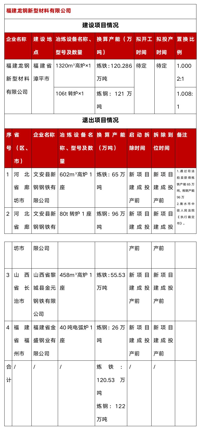 注:以上轉爐、電爐爐容單位為“噸”