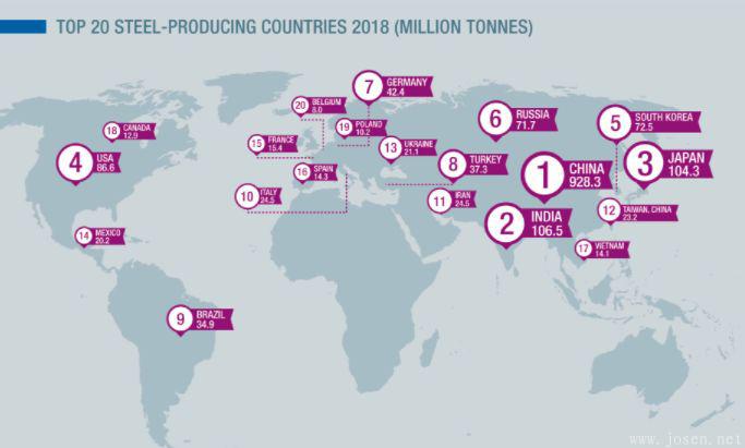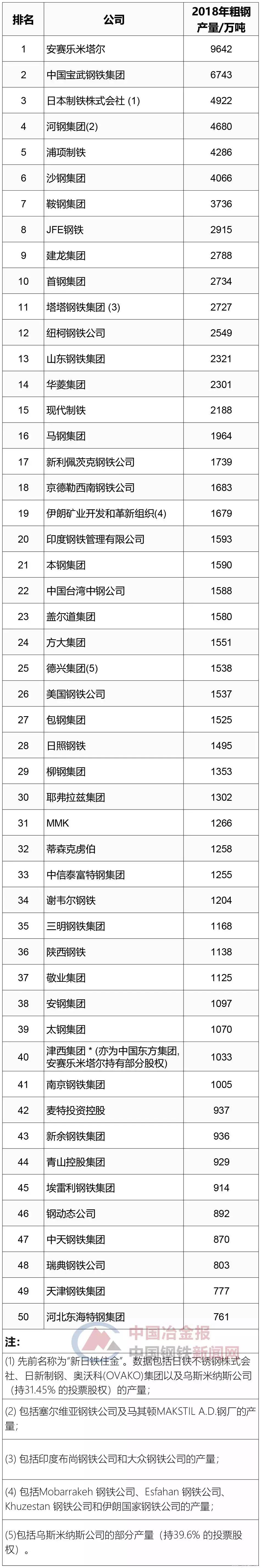 北京時間6月3日,世界鋼鐵協會發布《世界鋼鐵統計數據2019》,該統計數據根據2018年粗鋼產量情況對全球鋼鐵企業進行排名,并發布了全球前50大鋼鐵企業名單。(寶武和馬鋼合并前)