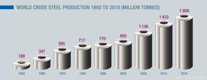一如既往,世界鋼鐵協會在過去的一年開展了一系列項目活動,由世界鋼鐵協會發起,并委托牛津經濟研究院研究世界鋼鐵行業在當今國際經濟體系中發揮的作用的項目近期剛結束,據研究表明,2017年,全球鋼鐵行業的銷售額高達2.5萬億美元,鋼鐵工業增加值接近5000億美元。通過采購原料、半成品、能源及對外支出服務費用等,鋼鐵行業每創造1美元的增加值,將帶動全球其他經濟部門創造2.5美元的增加值。按此方法測算,2017年鋼鐵工業增加值再增加1.2萬億美元。”
