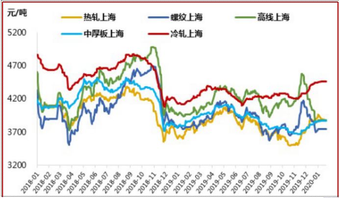圖表1   主要鋼材品種上海市場現貨價格走勢