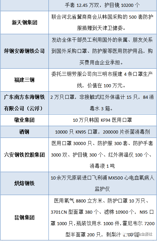 聚焦鋼市|抗擊疫情,鋼企最新援助情況一覽表(截至2月6日)