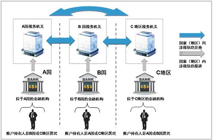 根據(jù)“標(biāo)準(zhǔn)”開展金融賬戶涉稅信息自動交換,首先由一國(地區(qū))金融機構(gòu)通過盡職調(diào)查程序識別另一國(地區(qū))稅收居民個人和企業(yè)在該機構(gòu)開立的賬戶,按年向金融機構(gòu)所在國(地區(qū))主管部門報送上述賬戶的名稱、納稅人識別號、地址、賬號、余額、利息、股息以及出售金融資產(chǎn)的收入等信息,再由該國(地區(qū))稅務(wù)主管當(dāng)局與賬戶持有人的居民國稅務(wù)主管當(dāng)局開展信息交換,最終實現(xiàn)各國(地區(qū))對跨境稅源的有效監(jiān)管。