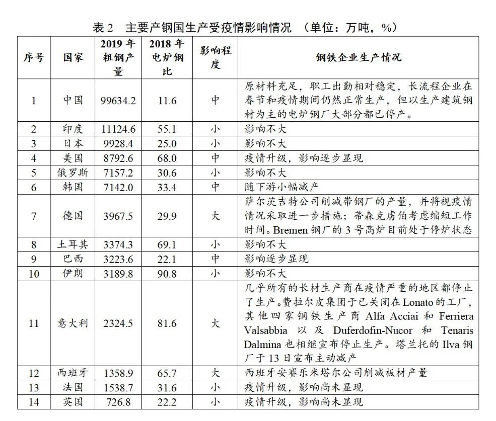 總體而言,疫情對世界鋼鐵生產的影響總體可控,粗鋼供給能夠保證。