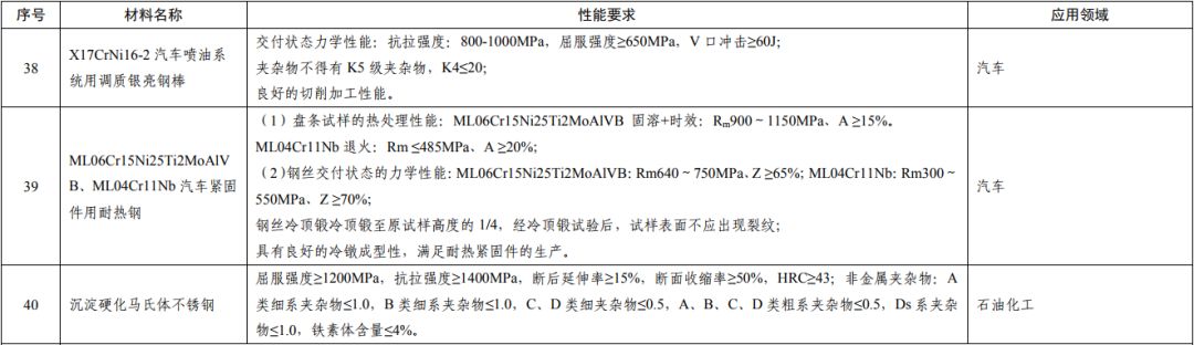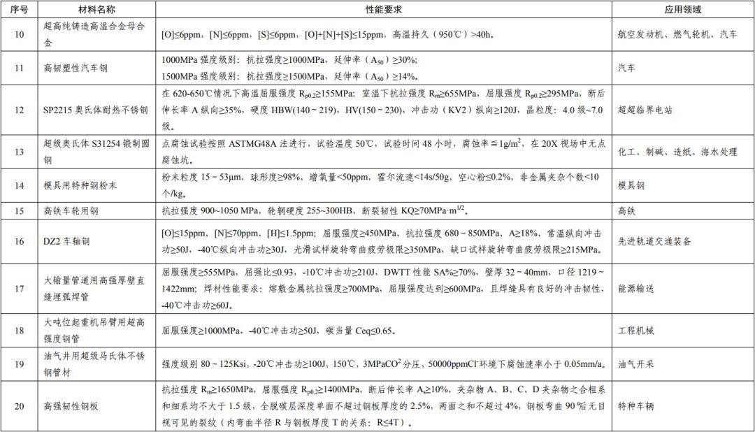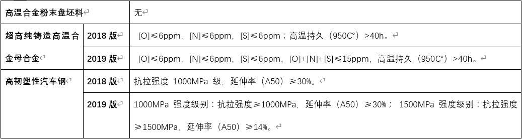 《目錄2019版》與《目錄2018版》相比,有11種先進鋼鐵材料的名稱相同,但部分材料的性能要求和應用領域有所不同: