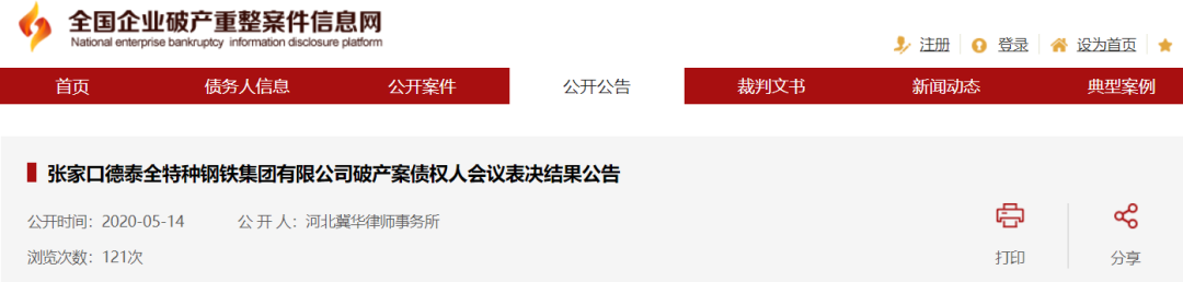 河北一鋼企(張家口德泰全特種鋼鐵集團)宣布破產!