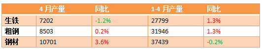 4月粗鋼產量超8500萬噸,同比增長0.2%