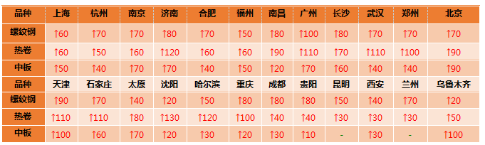 中板24個市場中22個市場上漲20-100,14-20mm 普中板平均價格3780元/噸,較上個交易日上調43元/噸。