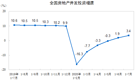 此外,固定資產投資降幅繼續收窄。1—7月,全國固定資產投資同比下降1.6%,降幅比1—6月收窄1.5個百分點。其中制造業投資下降10.2%,降幅收窄1.5個百分點。基礎設施投資同比下降1.0%,降幅比1—6月收窄1.7個百分點。呈現逐步恢復的態勢。