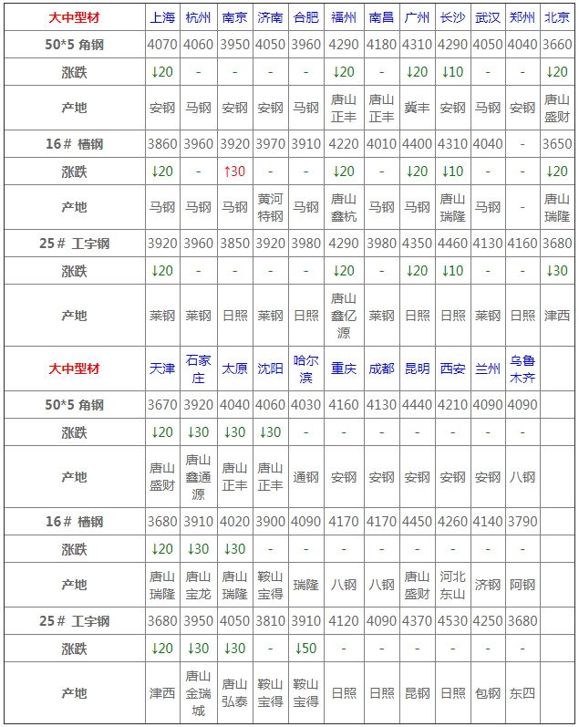 鋼坯走弱,成本端支撐疲軟,廠商心態不佳,且由于鋼價下跌速度較快,市場觀望情緒漸濃,整體成交表現并不樂觀,考慮到利潤問題,經銷商處于進退兩難的尷尬局面,預計明日型材市場價格將窄幅偏弱調整。