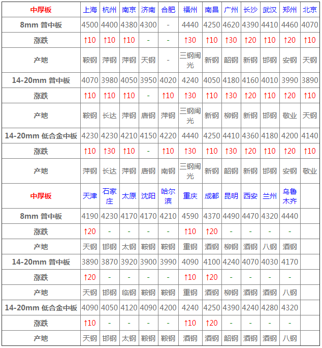 受市場行情普遍上調等影響,市場堅挺心態明顯,商戶操作普遍隨行就市,市場交投氛圍平平,下游需求表現偏弱,進入冬季下游施工放緩,多按需采購需求減弱,市場受期貨盤面影響較大,價格拉漲過快恐高情緒增加,操作謹慎,考慮供需兩弱態勢,預計明日中厚板價格或穩中偏強整理。