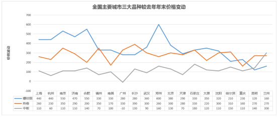 此外,從三大品種全國24個(gè)主要城市的波動(dòng)來看,兩個(gè)特點(diǎn)顯著: