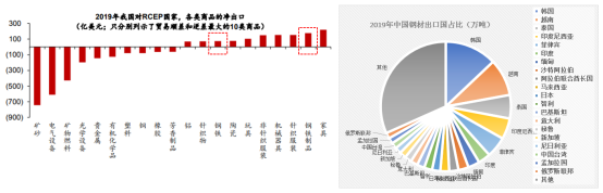 從對鋼鐵行業(yè)影響來看,鋼鐵和鋼鐵制品屬于我國對RCEP國家凈出口前10類商品。我國鋼材直接出口國家主要集中在東南亞地區(qū),包括韓國、越南、泰國、菲律賓等國均是RCEP的重要國家,有利于鋼材下游制造業(yè)出口的推進(jìn),和制造業(yè)零部件進(jìn)口成本的降低。促進(jìn)制造業(yè)產(chǎn)業(yè)鏈的優(yōu)化,推進(jìn)鋼鐵行業(yè)提質(zhì)增效,以及促進(jìn)鋼材的直接和間接出口,外需拉動(dòng)將進(jìn)一步增強(qiáng)。