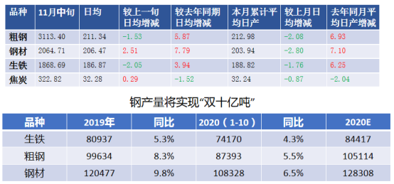 今年粗鋼和鋼材產(chǎn)量持續(xù)創(chuàng)新高,盡管10月產(chǎn)量小幅回落,但仍處于歷史高位水平。且隨著鋼價(jià)拉漲,利潤回升,鋼廠增產(chǎn)動(dòng)力加強(qiáng),近一周高爐開工率有所回升。且全年鋼產(chǎn)量,粗鋼和鋼材將實(shí)現(xiàn)“雙十億噸”。
