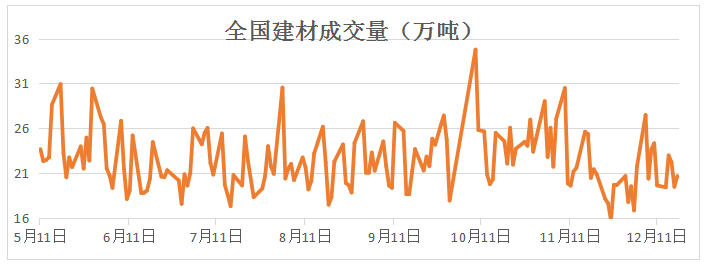 全國建材成交量保持20萬噸 本周鋼價持續(xù)拉漲,但成交一般,日均成交量僅在20萬噸水平,保持相對低位。從市場反饋來看,受恐高心態(tài)影響,采購謹慎,以剛需為主。此輪鋼價大幅拉漲,一定程度上背離基本面,原料端強勢也成為重要推手。