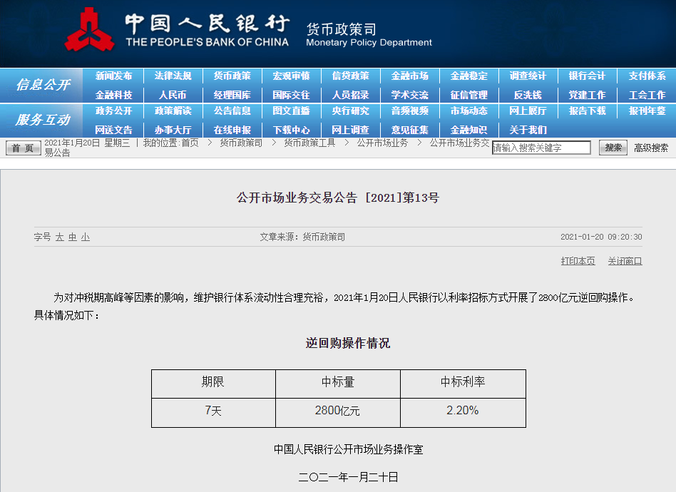 央行投放2800億
