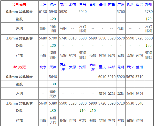今冷軋板卷價格小幅下調;由于近日市場出貨較差且黑色系商品期貨走勢又弱,下游采購需求減少,市場商家為完成日均成交量而小幅降價。現1.0mm主流成交價5550-5600元/噸。總體來看,雖然近期成交略有下滑,商家優(yōu)惠出貨,但整體下跌空間不會太大,現訂貨價格處于高位,成本尚有一定支撐。綜合考慮,預計短期冷軋卷板價格適度出貨。