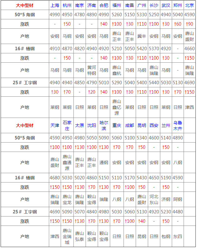 今型價漲勢加大。成本端大幅反彈刺激,鋼企報價跟漲積極,加上市場庫存低位,商家心態有所好轉,短期型價將高位運行。