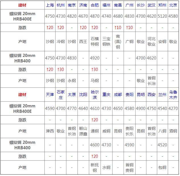 3月18日建材價(jià)格:小漲運(yùn)行;