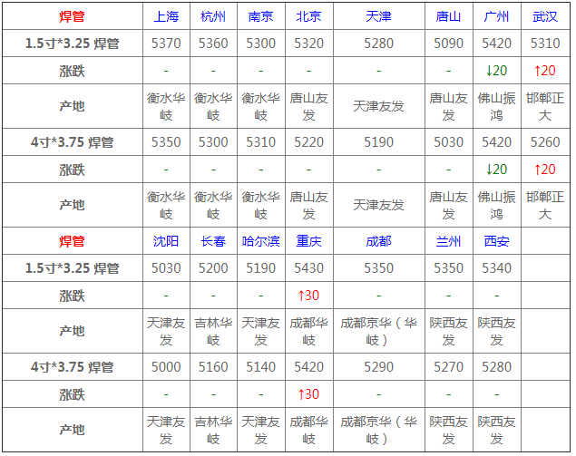 今日開(kāi)市,18日唐山市場(chǎng)焊管價(jià)格窄幅上調(diào),成交尚可。據(jù)富寶鋼鐵網(wǎng)管材研究中心市場(chǎng)監(jiān)測(cè)顯示:成都市場(chǎng)1.5*3.25成都京華焊管價(jià)格為5740元/噸,4*3.75成都京華焊管價(jià)格為5730元/噸,6*4成都京華焊管價(jià)格為5780元/噸。
