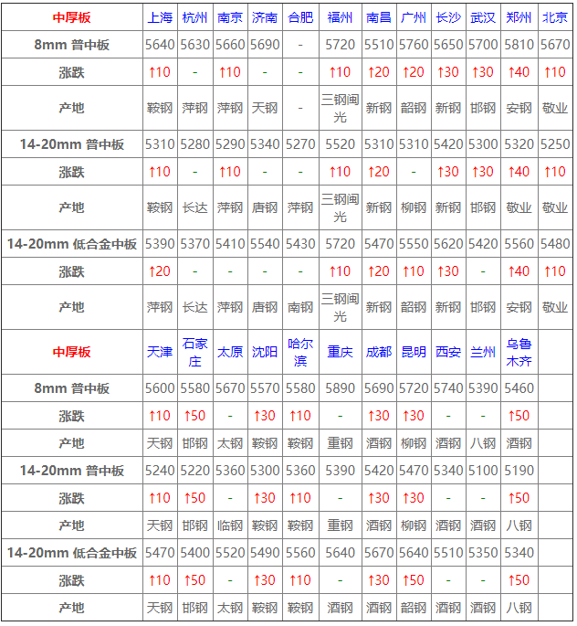 今中板市場穩(wěn)中偏強,幅度10-50,商家恐高心理濃郁,整體成交表現(xiàn)一般,下游觀望情緒較濃,庫存壓力不大;預(yù)計價格繼續(xù)上漲!