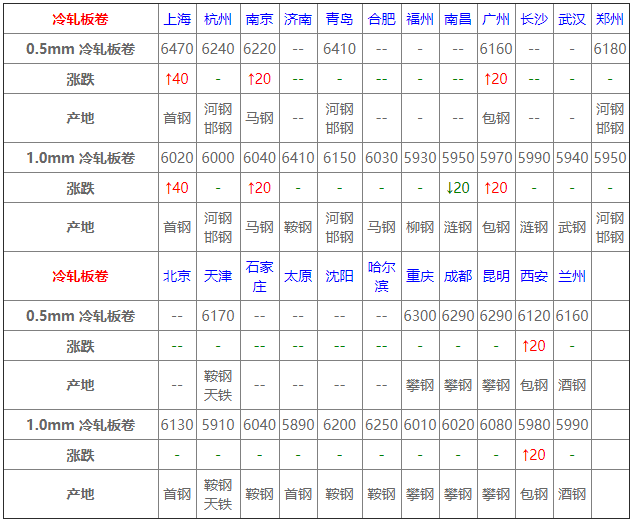 今全國冷軋市場漲跌穩均現,幅度10-70元,華中冷軋交投氛圍稍有好轉,僅個別地區有暗降情況,優惠幅度10-20左右,終端按需拿貨,整體成交平淡;