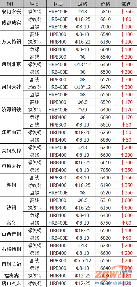 2021年5月11日鋼廠調(diào)價>:調(diào)價:一次漲750!39家鋼廠仍在扎堆漲價!