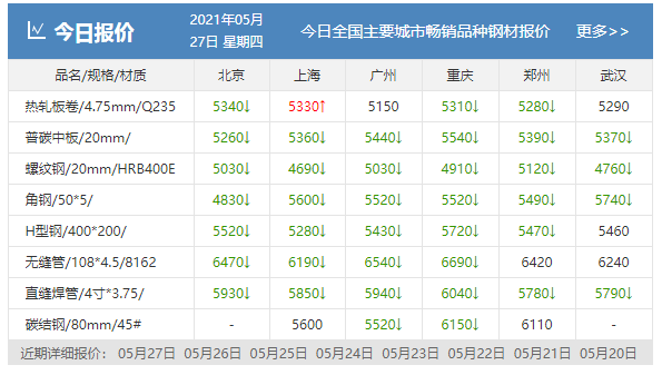 2021年5月27日 鋼材價格 最新信息 反彈!期鋼全面翻紅!鋼價要漲了?