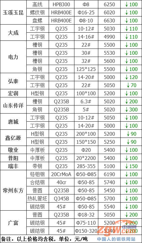 廣富優鋼價格下調200元/噸