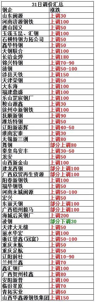 5月31日臨汾星原廢鋼上調70:a-級鋼筋頭50公分內3170,b級鋼筋頭3240,c級鋼筋頭3310,a-級板料3150,b級板料3220,c級板料3270。