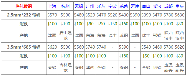 今全國帶鋼下行整理,華北主導鋼廠降50-80,唐山窄帶累降100-150不等,整體一般有弱,僅個別可,華東華南弱勢整理,交投不佳。