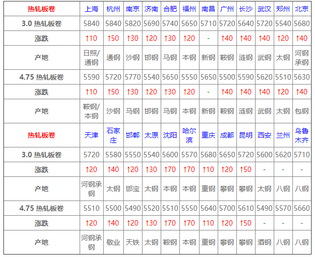 6月11日熱軋板卷價(jià)格:上行為主;