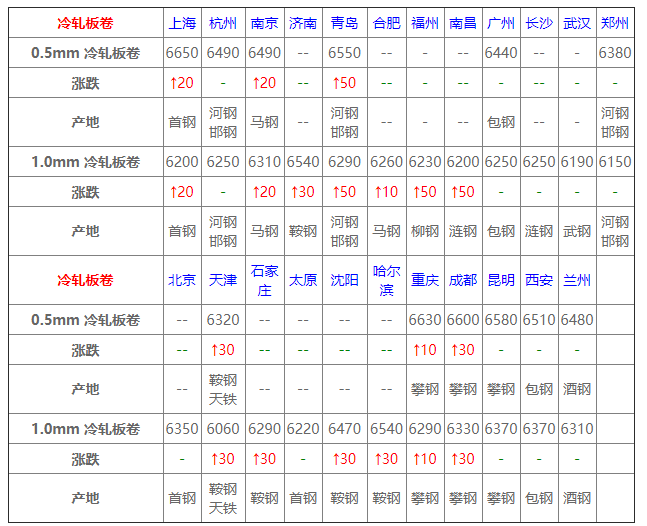6月11日冷軋板卷價(jià)格:穩(wěn)中上調(diào);