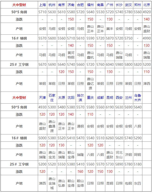 6月11日型材價(jià)格:小漲為主;