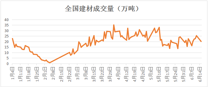 從數據來看,6月進入傳統淡季以來,市場成交持續轉弱,建材日成交量始終位于25萬噸以下,本周進一步回落,反映市場采購謹慎,成交整體偏弱。且今日隨著期鋼再度大跌,終端觀望情緒濃厚,商家出貨為主,進一步帶動價格下探。